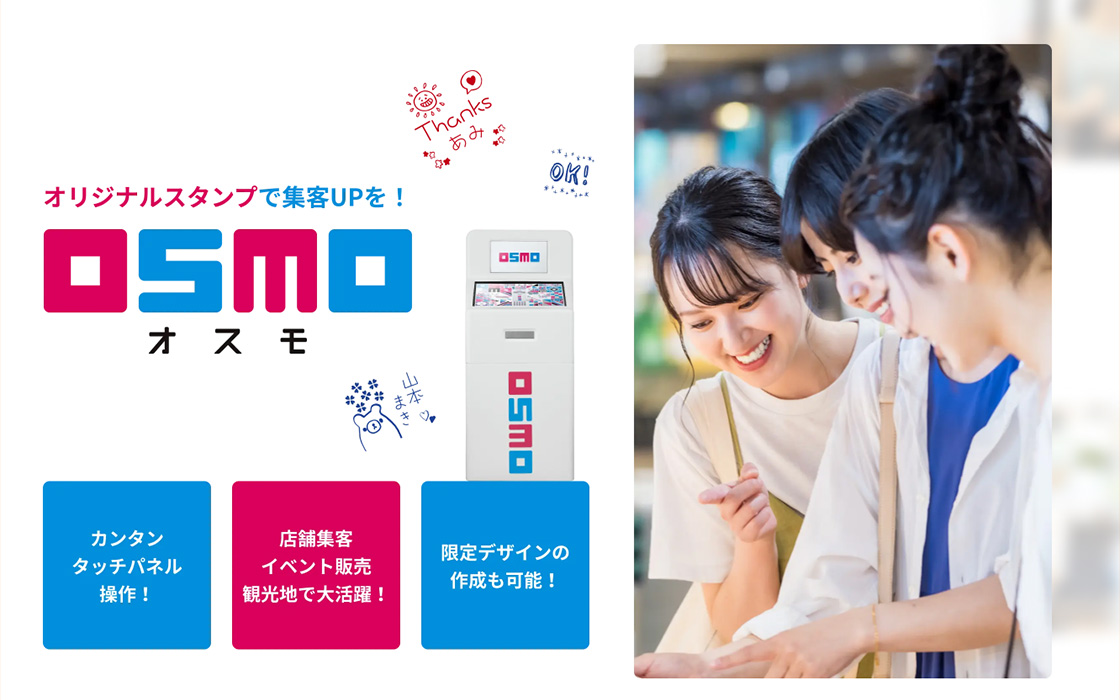 OSMOとは、どこでも・その場で・カンタンに 自分だけのオリジナルスタンプがつくれる、シヤチハタのサービスです。写真をスタンプにしたり、イラストや手書きでデコレーションしたり、思いどおりのスタンプがつくれます。